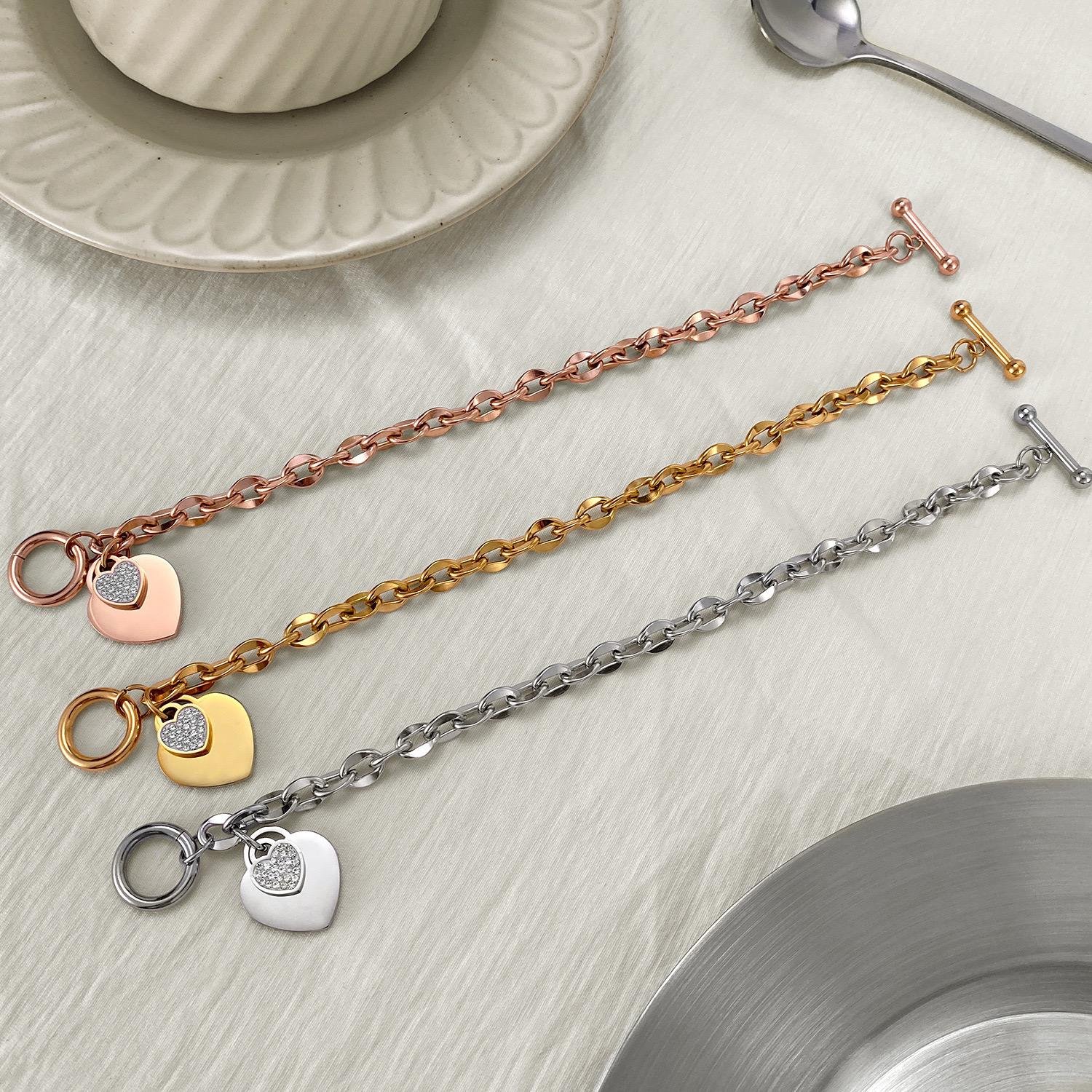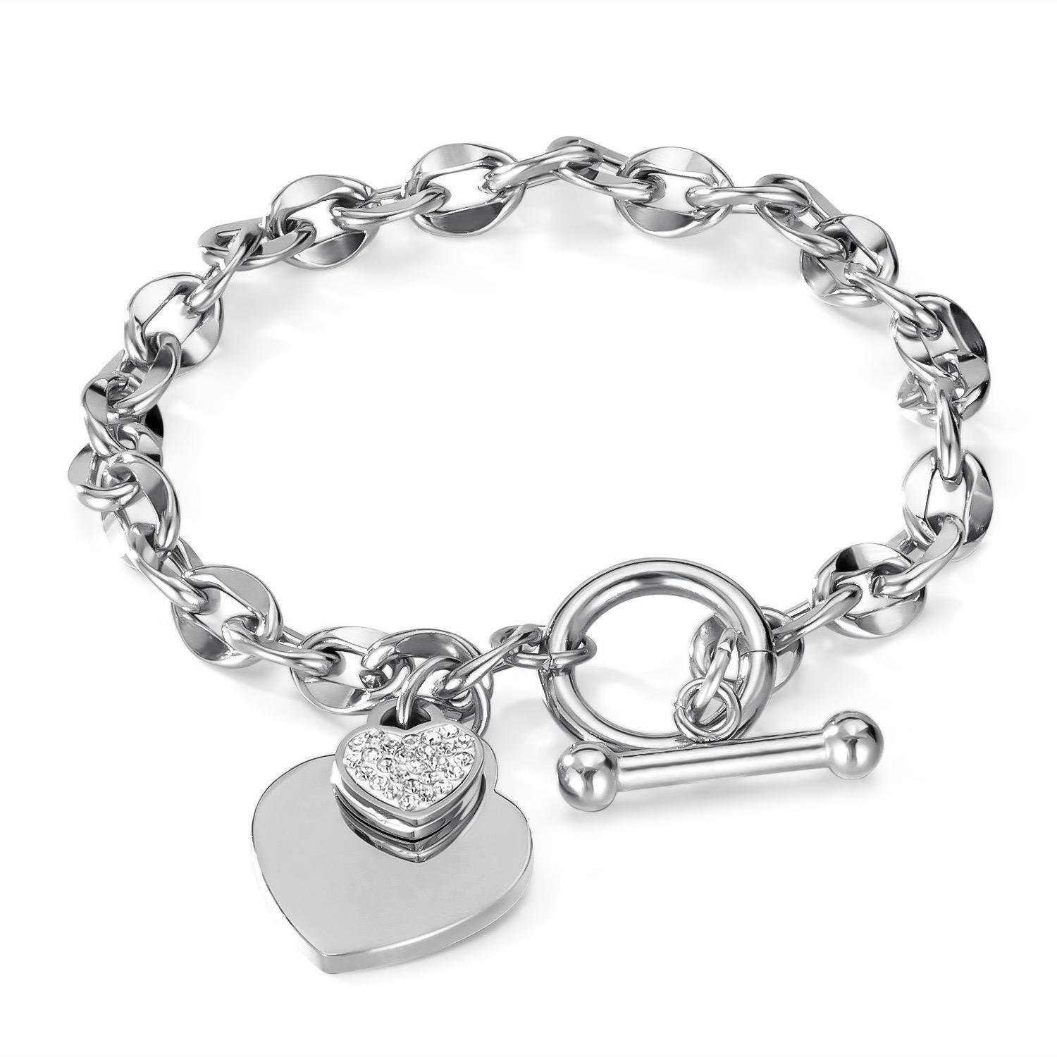 The Tobluxe personalized bracelet is crafted from premium stainless steel with a polished, elegant finish.